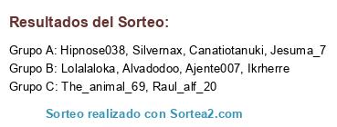 Lista de participantes: Silvernax, Jesuma_7, Hipnose038, The_animal_69, Alvadodoo, Canatiotanuki, Lolalaloka, Raul_alf_20, Ajente007, Ikrherre.