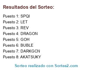 Lista de participantes: GOH, AKATSUKY, SPQI, REV, DRAGON, LET, BUBLE, DARKGCN.