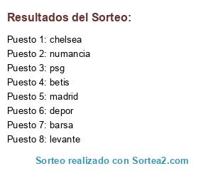Lista de participantes: levante, madrid, chelsea, depor, barsa, numancia, psg, betis.