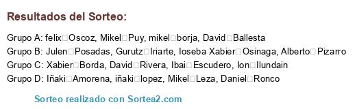 Lista de participantes: Iñaki Amorena, David Ballesta, Alberto Pizarro, felix Oscoz, Gurutz Iriarte, Ibai Escudero, Julen Posadas, Mikel Leza, iñaki lopez, Ion Ilundain, mikel borja, Ioseba Xabier Osinaga, Mikel Puy, David Rivera, Daniel Ronco, Xabier Borda.