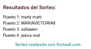 Lista de participantes: MARIAVICTORIA8, sofiaaien, marty marti, jesica cool.