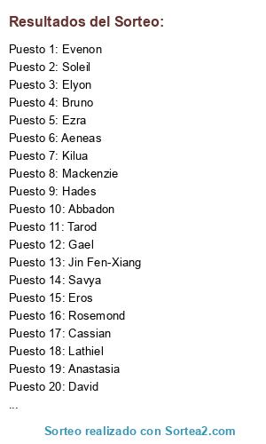 Resultados del sorteo: