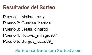 Lista de participantes: Molina_tomy , Guadaa_barrios , Jesus_dinardo , Kotovic_milagros07 , Burgos_lucas89_.