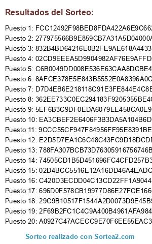 Este sorteo ha sido certificado por Sortea2. Sortea2 garantiza que: