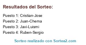 Lista de participantes: Javi-Luismi, Juan-Chema, Ruben-Sergio, Cristian-Jose.