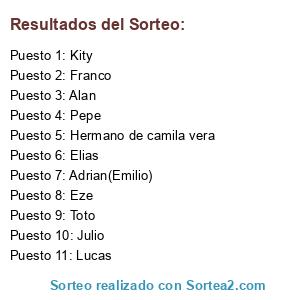Lista de participantes: Franco, Lucas, Julio, Pepe, Kity, Elias, Eze, Hermano de camila vera, Toto, Alan, Adrian(Emilio).