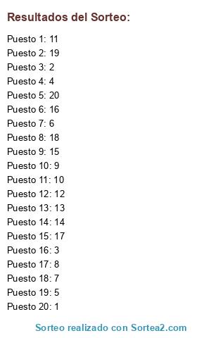 Resultados del sorteo: