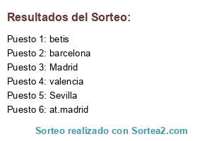 Lista de participantes: Sevilla, Madrid, barcelona, betis, at.madrid, valencia.