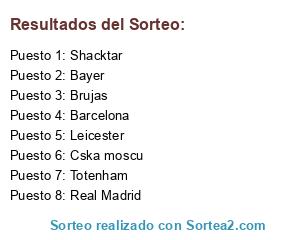 Lista de participantes: Barcelona, Real Madrid, Shacktar, Bayer, Brujas, Totenham, Leicester, Cska moscu.