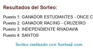 Lista de participantes: SANTOS, INDEPENDIENTE RIVADAVIA, GANADOR ESTUDIANTES - ONCE CALDAS, GANADOR RACING - CRUZEIRO.