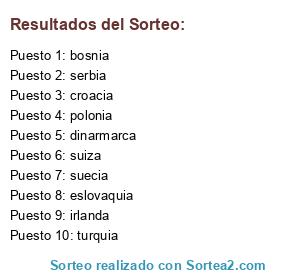Lista de participantes: croacia, turquia, eslovaquia, bosnia, suiza, polonia, irlanda, serbia, dinarmarca, suecia.
