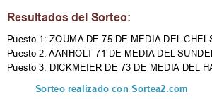 Lista de participantes: AANHOLT 71 DE MEDIA DEL SUNDERLAND AL MALLORCA, ZOUMA DE 75 DE MEDIA DEL CHELSEA AL MALLORCA, DICKMEIER DE 73 DE MEDIA DEL HAMBURGO AL MALLORCA.