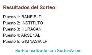 Lista de participantes: GIMNASIA LP, INSTITUTO, HURACAN, ARSENAL, BANFIELD.