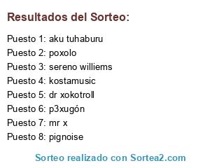 Lista de participantes: poxolo, p3xugón, mr x, sereno williems, dr xokotroll, kostamusic, pignoise, aku tuhaburu.