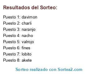 Lista de participantes: lobito, akete, naranjo, nacho, valrojo, fines, charli, davimon.