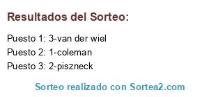 Lista de participantes: 1-coleman, 2-piszneck, 3-van der wiel.