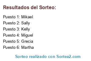 Lista de participantes: Kelly, Mikael, Martha, Miguel, Sally, Grecia.