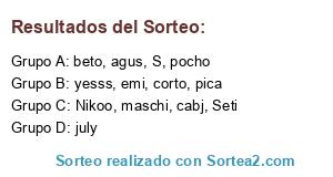 Lista de participantes: Nikoo, S, Seti, emi, beto, corto, july, pica, maschi, agus, pocho, cabj, yesss.