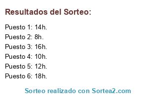 Lista de participantes: 8h., 10h., 12h., 14h., 16h., 18h..