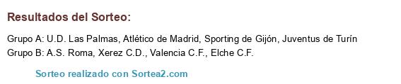 Lista de participantes: A.S. Roma, Xerez C.D., U.D. Las Palmas, Juventus de Turín, Atlético de Madrid, Elche C.F., Valencia C.F., Sporting de Gijón.
