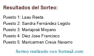 Lista de participantes: Loli Alabarce Garrido, Ana Rodríguez Vicente, Lola Pereira Verdejo, Naiara Lopez Vega, Teresa Re, Ana Maria Castillo Pedrosa, Cristina Tébar Cortés, Maria Macia, Laura Palacios, Paquita Alvarez Alfaro, Stefany Martinez, Thaoma Bx, Cristina Fonsi, Eli Barbero Cobos, Yoli Soler, Maria Navas, Sandra Pérez Izquierdo, Carmen Moreno, Rocio Romero Mudarra, Mónica CuantasCosucas, Marta Camp, Gabriela Gebo, Francisco Javier Vazquez Castillo, Vanesa Hiraldo Briones, Raquel Baña Mouzo, Sus Vic, Marivi Perez, Nuria Martos Bolívar, Lorena Lorenix, Macarena Infantes, Mayte Sanchez, Maria Martin, Sole Vila, Moni Perez, Leyre Fernández, Cristina Valverde Muñoz, Marcela Orrego Vergara, Merce VB, Mari Angeles Sastre Vera, Pepi Romero Alvarez, Loli Perez, Alexandra Lanza García, Yolanda Luna, Irene Jimenez Lopez, Patricia Fernández Santos, Lisabel Garcia Garcia, Carmen Ruiz Custodio, Mai Arrizabalaga, Tony Roldan, Raquel Solmar, Pilar Sanchez Montañes, Irene Gutiérrez, Nela Roni, Mar Alonso Lopez, Azucena Romero, Maria Jose Soto Aparicio, Yolanda Caballero Garcia, Maite Caymel, Mari Munin, Soledad Hernández Muñoz, Alicia Soto Tornero, Rebeca Blázquez Jover, M Paz Pellús García, Angela Casamayor, Nuria Camino Pérez, María Serrano, Sagrario Rodriguez, Laura Oliver, Au Revoir Cristina, Irene Tinoco Perez, Amparo Martí, Monica Requena, Julian Alvarez Cabrera, Rosa Maria Gomez Ferris, Monica Marmol, Rosa Rodrigo, Mame Galvan Rodriguez, Adela Flores Gallego, Raquel Reviriego Gutierrez, Montse Jimenez Gonzalez, MaBel Palomero, Herminia Solé Pelegrina, Sara Hidalgo Zurita, Virginia Gonzalez Espinar, Olga Zach, Leire Barrio Ibañez, Pilar Gil Costa, Elisa Eme, Barbara FG, Carolina Lozano, Cris Galarza, Paula Guillén, Ana M Gutierrez, Jose Antonio Rodriguez, Núria Svm, Mayca Diaz Fornes, Pili Castillo, Vanessa Piñeiro Agulla, Charo Romero Álvarez, Lorena Rrhh, Miriam Oliver, Marta Negrillo, Monika Velo, Cris H. Plaza, Vanesa Valencia, Laura Espada Vera, Ire Canudo Cervero, Marilo Oliver, María Pérez, Luisa Maria Garcia Repiso, Jose Jover, Diez Jose Francisco, Jose Guzman, Cristina Solanas, María ZP, Myriam Graciela García Cazorla, Alicia Zorita Nieto, Carmen Cismaru Stoica, Escarlata Castro Rey, Natalia González Serrano, Eva Cisneros Peña, Encar Fenollar Vercher, Susana Lopez Jimenez, Marina Beatriz Rodriguez, Odette Noguer, Sandra Toledano, Marisa Alonso Morais, Rosa Maria Alforja, Soledad Cabello Fernández, Saray Blazquez Campos, Güisi Hina, Estibaliz Abalos, Sari Cu Ca, Almudena Miravete Garcia, Nuri Macias, Luis Espada, Arantxa AlGo, Jessi Val, Roxana Dumitru, Rebeca Ruiz, María Bamio, Cari Andujar Diagi, Evi Albiol, Angela Caballe Noguer, Rmaria Camacho, Maria Rodriguez, Sara Rojo, Johana BarSan, Ana Villayandre Robles, Sandra Perez, Mil Arias, Noelia Alonso Pa, Beatriz Camarena Ruiz, Lola Robleño Rosado, Helena Romero Alfaro, Arantxa Rabinad Languil, Anna Bon, Mayka Medina, Sandra Orgaz, Vanesaa Rubio, Judit Puerto Vera, Yahara Sevilla Perez, Isabel García, Raquel Alvarez C, Raquel Cabiedes, Mari Lorenzo, Victor Aparicio, Feli Gea Pérez, Trini Fernandez, Mònica Autet, Roxana Neagu, Sandra Fernández Legido, Jairo Miguel del Río, Rebeca Pascual, Lidia Rgz Mrn, Oriol Ponent, María SC, M Angeles Guerra Rodriguez, Ana Maria Izquierdo, Nuria Tressols Piquer, Eva Ortiz, Patricia Espada Sesar, Maria Guestardo, Alberto Vidal, Carmen PeBu, Susana Bandrés, Adriana Uribe, José JC, Susy Garcia Lopez, Ana María Martín Cobos, Karmen Ripiris, Angela Chamizo Castilla, Ariadna Thomas, Isabel L. Luque, Sonia Garcia Pastor, Manu Gould, Melisa Coloiera, Ana Maria Lucaci, Mara Cosio, Laura Susin Ramos, Sonia Rodriguez Garcia, Elisabeth Rodriguez Galarraga, Núria Octavio, Nuria Vila, Marina Martín, Maite Torrecillas Massa, Marieta Gominolez, Ana Maria Huidobro Muñòz, Vicenta Simon Arevalo, Lucia Ruiz Trujillo, Yolanda Martí Miralles, Gloria Cortijo Garcia, Sandra De Paz Alvarez, Ana Barros Ampudia, Elena Sacristan, Mariana Sanchez Moreno, Maria Pilar Rico Falcó, Marina Toro Gonzalez, Maricarmen Seijo, Abdelghani El Harrati, Sheila Rueda Escudero, Toñi Palacio, Nana Vento, Carolina Gimenez, Conchi Blazquez, Martha YC, Tresa Juncà, Maria Pilar, Soraya G Martinez, Ali Alicia, Eugenia Miranda Garcia, Alicia MT, Irene Collantes, Mari Faulime Outon, Cristina Martin, Ingrid Sabate Castanedo, Ivana Bg, Cristi Dorado, Teresa Carballido, Maria Peris Gonzalez, Piluca Perez, Nuria Ribera, Jose Luis Dominguez, Dolors Senserrich Pairó, Juanin Heredia, Isabel Gómez, Merche Vicén Serra, Ana Gallego Partida, Pilar Castillo Porras, Vanessa Villa Gutierrez, Marga Fernández, Sofía Fernández González, Cristina Vela, Alicia Vegara Mancho, Núria Ros Pagès, Eloy Carazo Garcia, Maria Teresa Romera Oñate, Ana Belén, Silvia Roldan Moreno, Raquel Gonzalez Gomez, MaBel AlGa, Conchita Girones, Mary Gallardo Perez, Nancy Miranda, Begoña C. Ortega, Bego Álvarez, Fran Huelde, María De Los Ángeles Allende, Mari Carmen Cerezo, Marta Martin Sanchez, Luli España, Isabel Gimeno, Inma Mora, Lery LC, Carmen Usó, Matilde Ojeda Martinez, Cristina Estadella Garcia, Charo García, Marti Peñil, Elena Berm, Esperanza Dominguez, Rocio Reyes Correa, MTere AR, Cristo Montero Moreno, Rafaela Arévalo, Lucía Román, Vanessa López, Sara Perez Diaz, Marta Sanchez, Marilo Gómez Flo, Aitziber Urbistondo, Encarni Lopez G, Marina BF, Sandra Peña, Felicidad Rodriguez Erice, May Delgado, Sandy Martin, Merchi Cabrera Valverde, Lorena Periolo, Pilar Aranda, Numancio Garcia, Rosario Galindez Hernandez, MCarmen Meca Jesus, Yolanda Sánchez, Lola Esteban, Maria Teresa Fernandez Ferreira, Bego Alvarez, Danoxe Cere Bol, Natalia Llinares Barona, Núria Aymerich Plans, Graciela Arias Fernandez, Asun Baro, Jos Mar Miguelez, Lourdes Her Mi, Rafa Garcia Lucena, Manu Figueredo, Patricia Serna Miguel, Marta Gonzalez Huertas, Maria Angeles Garcia Garcia, Cristina Nicolau Villellas, Silvia Martínez, Imma Ca
