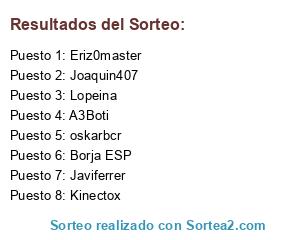 Lista de participantes: Borja ESP, Javiferrer, Eriz0master, oskarbcr, Lopeina, Kinectox, A3Boti, Joaquin407.
