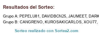 Lista de participantes: DAVIDBCN25, XOU77, DARKEIDER, PEPELU81, JOSEPEPU, KUROSAKICARLOS, CANGRENO, JAUMEET.