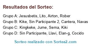Lista de participantes: Kingkeke, Kiki, Navas, Llavi, Jesusbetis, Cocido, Jume, Airton, Rober, Cantera, Elan-g, Kike, Lito, Sema, Sin Participante, Sin Participante 2.
