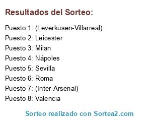 Lista de participantes: (Inter-Arsenal), (Leverkusen-Villarreal), Milan, Valencia, Nápoles, Sevilla, Leicester, Roma.
