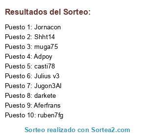 Lista de participantes: muga75, Julius v3, Jugon3AI, casti78, Adpoy, ruben7fg, Jornacon, Shht14, Aferfrans, darkete.