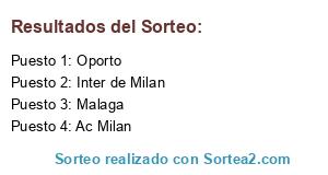 Lista de participantes: Malaga, Ac Milan, Oporto, Inter de Milan.