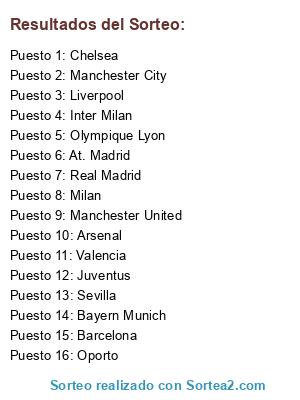 Resultados del sorteo: