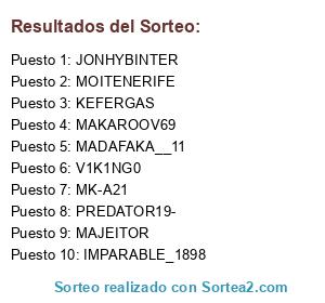 Lista de participantes: MADAFAKA__11, KEFERGAS, MAJEITOR, MOITENERIFE, PREDATOR19-, JONHYBINTER, V1K1NG0, MAKAROOV69, IMPARABLE_1898, MK-A21.