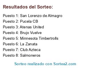 Lista de participantes: Minnesota Timbertrolls, Club Azteca, San Lorenzo de Almagro, Brujo Vuelve, Atenas United, Pucela CB, Salmoneros, La Zanata.