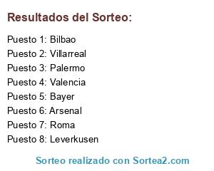 Lista de participantes: Bilbao, Roma, Arsenal, Bayer, Valencia, Palermo, Villarreal, Leverkusen.
