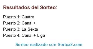 Lista de participantes: La Sexta, Canal +, Cuatro, Antena 3, Gol Television, Canal + Liga.