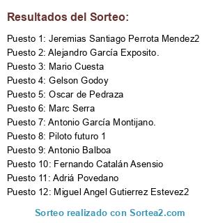 Lista de participantes: Alejandro García Exposito., Antonio García Montijano., Jeremias Santiago Perrota Mendez2, Gelson Godoy, Miguel Angel Gutierrez Estevez2, Adriá Povedano, Mario Cuesta, Oscar de Pedraza, Antonio Balboa, Marc Serra, Fernando Catalán Asensio, Piloto futuro 1.