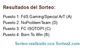 Lista de participantes: Bamdaliers CF (A), Elemento (B), SoC Gaming (C), eVolved Suricate (D).