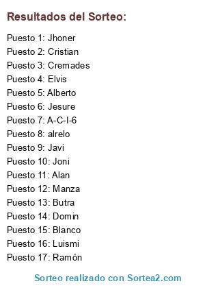 Lista de participantes: Manza, Alan, Butra, Cristian, Blanco, Cremades, A-C-I-6, Joni, alrelo, Luismi, Javi, Ramón, Alberto, Elvis, Jhoner, Domin, Jesure.