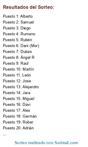Resultados del sorteo: