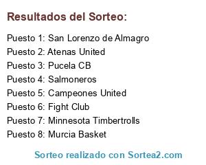Lista de participantes: Minnesota Timbertrolls, Pucela CB, Atenas United, Campeones United, San Lorenzo de Almagro, Murcia Basket, Fight Club, Salmoneros.