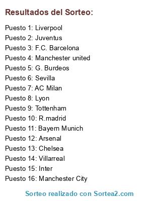 Resultados del sorteo: