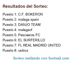 Lista de participantes: DANJO TEAM, FL REAL MADRID UNITED, usilroz, malaga spain, EL SURFERILLO, malagacf, C.F. BOKERON, Pescaeros FC.