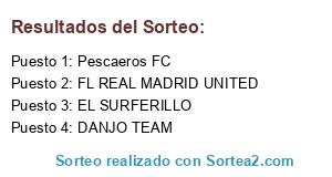Lista de participantes: Pescaeros FC, EL SURFERILLO, FL REAL MADRID UNITED, DANJO TEAM.