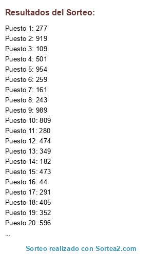 Este sorteo ha sido certificado por Sortea2. Sortea2 garantiza que: