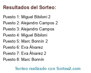 Lista de participantes: Miguel Bibiloni(2 participaciones), Alejandro Campos(2 participaciones), Eva Álvarez(2 participaciones), Marc Bonnín(2 participaciones).