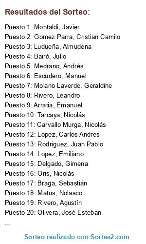 Resultados del sorteo: