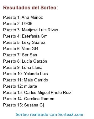 Lista de participantes: Maje Garrido , Enca González , Marijose Luis Rivas , Susana Gj , Luna Llena , Yolanda Luis , Estefanía Gm , Carlos Miguel Prieto Ruiz , Lucía Garzón , Sergio Fernandez , Vero GR , Ana Muñoz , Carolina Ramon , Ser San , Lexy Suárez , m.iarte , f7936.