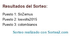 Lista de participantes: cajaverde, chrval, colombianos, ivaver, losvolts2015, ludendor, Octubre_Rojo, SirZemus, TucuIndustrial, txanon.
