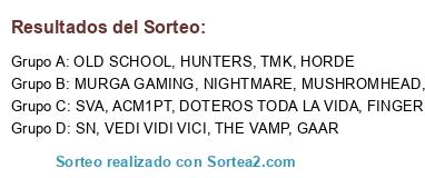 Lista de participantes: TMK, SVA, MURGA GAMING, ACM1PT, MUSHROMHEAD, OLD SCHOOL, SN, THE VAMP, GAAR, HORDE, SC GAMING, VEDI VIDI VICI, DOTEROS TODA LA VIDA, HUNTERS, FINGER ELEVEN, NIGHTMARE.